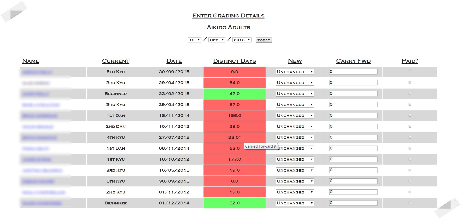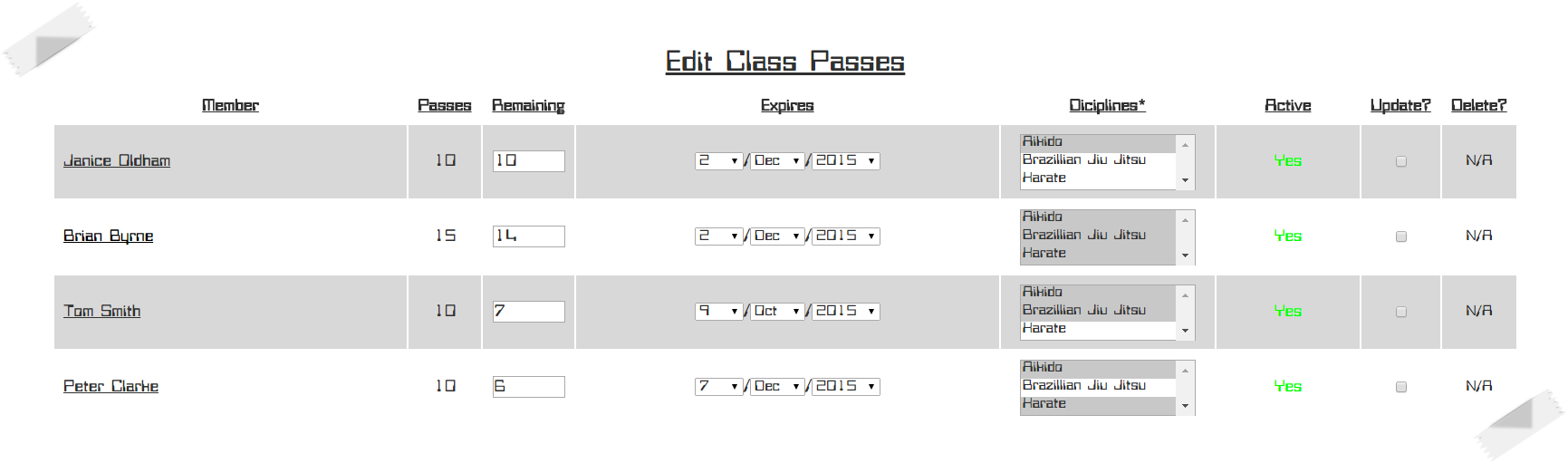 | Keep track of each member's grade or belt. |