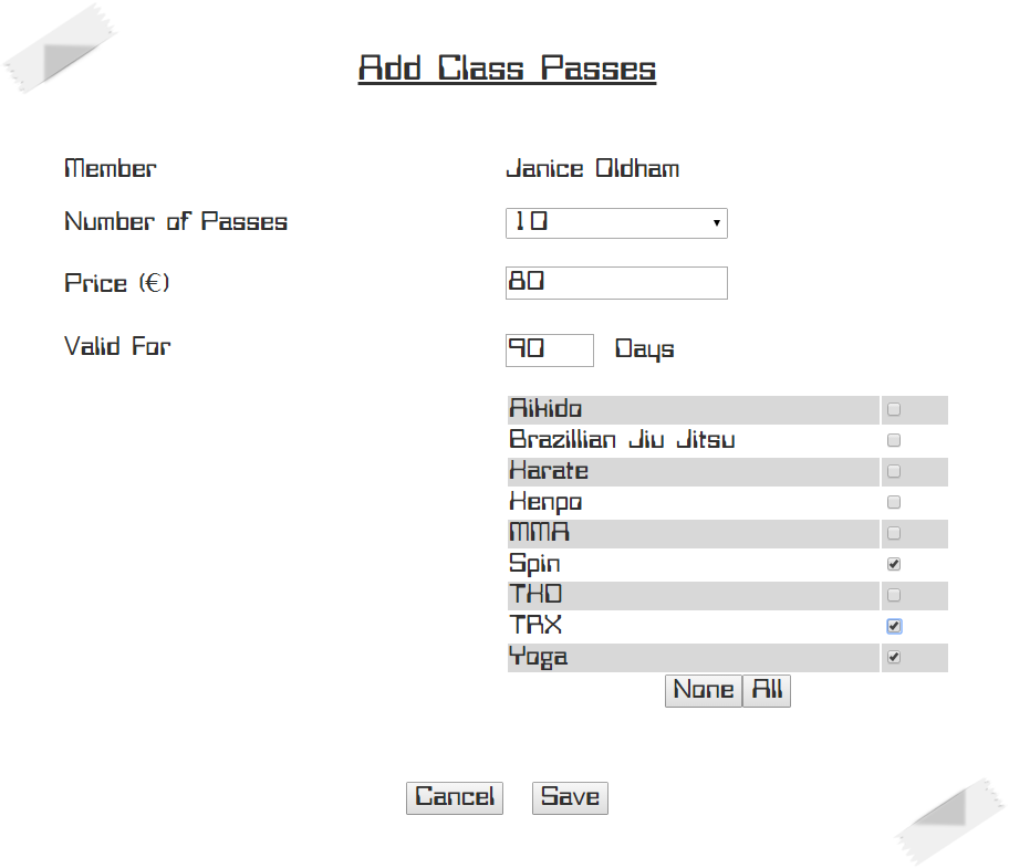 | A member can pay for several classes up front. |