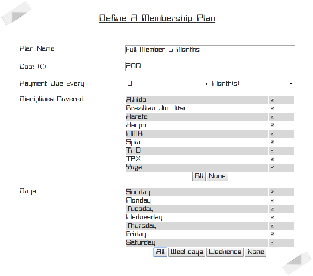 | Simply give the plan a name, cost and payment frequency. |
