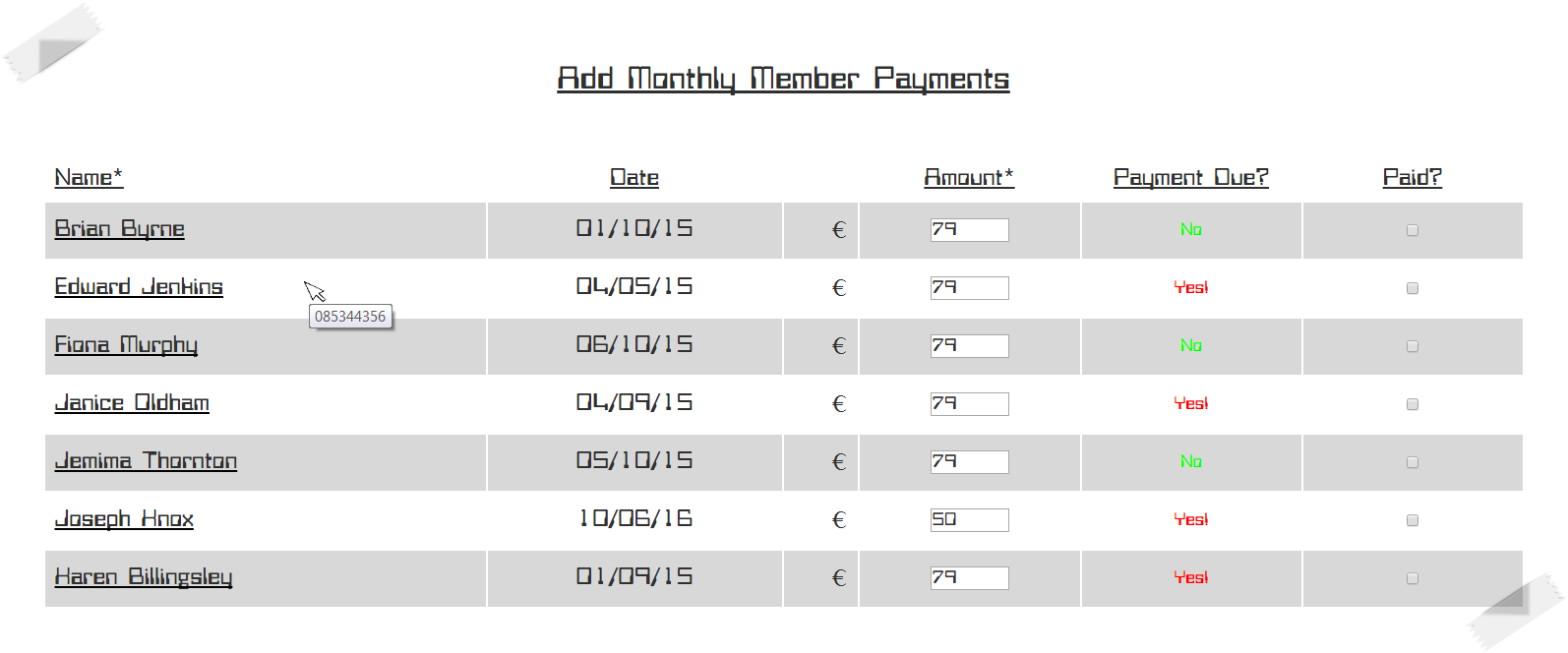 | Simply check the 'Paid?' box to indicate a payment received. |